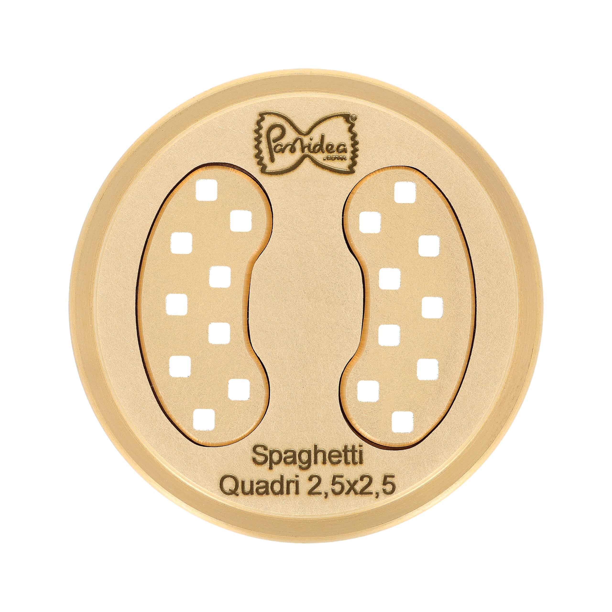 The assembled bronze die Spaghetti Squared Quadri Chitarra 2.5x2.5mm, compatible with the Parmigiana Sofia machine, is an essential accessory for expanding the capabilities of your professional equipment. This die is manufactured as a single assembled block, designed to ensure maximum stability and precision during extrusion.