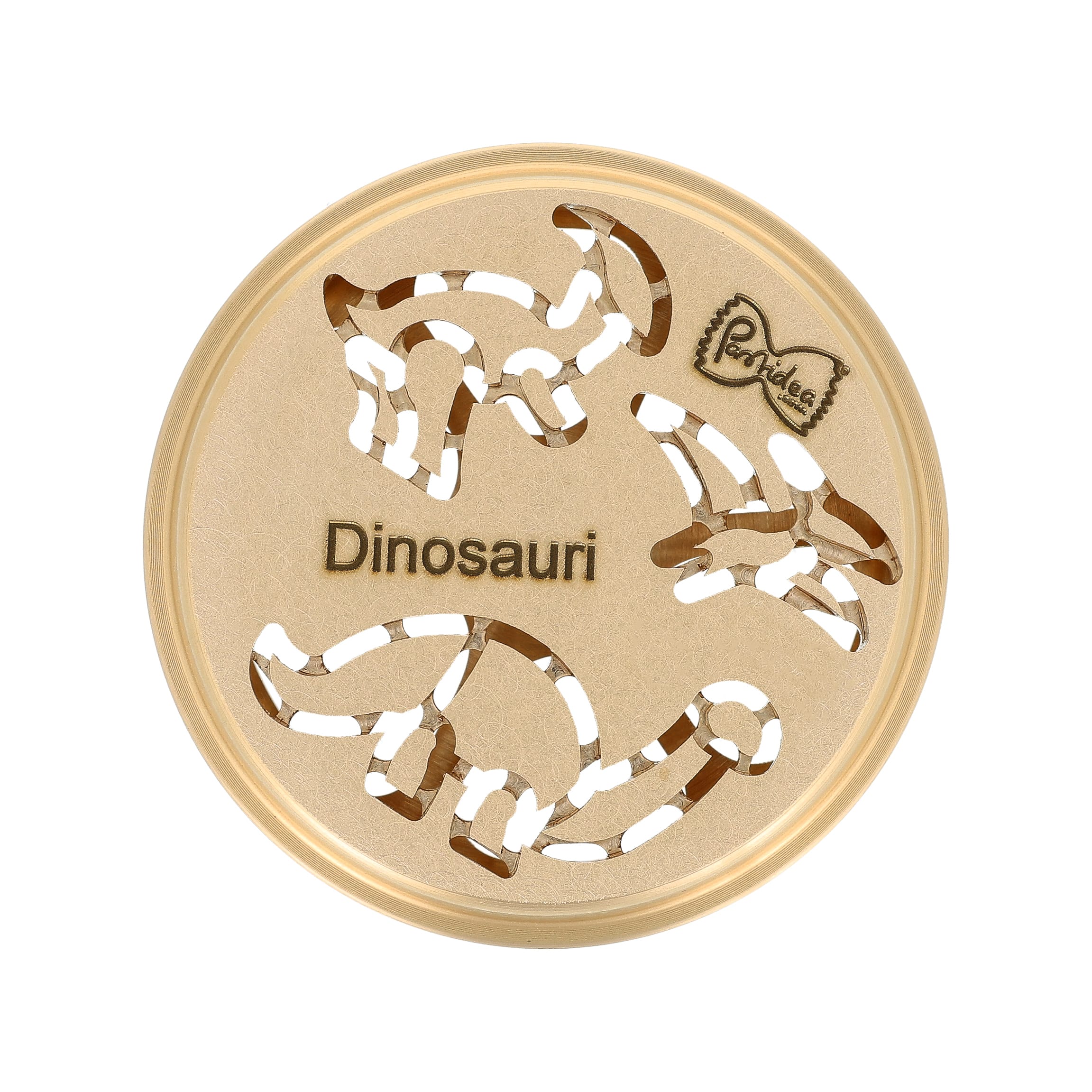 The Bronze Dinosaur Die – Jurassic Edition is compatible with the Kenwood pasta extruder. This die offers the authentic quality of bronze-extruded pasta.